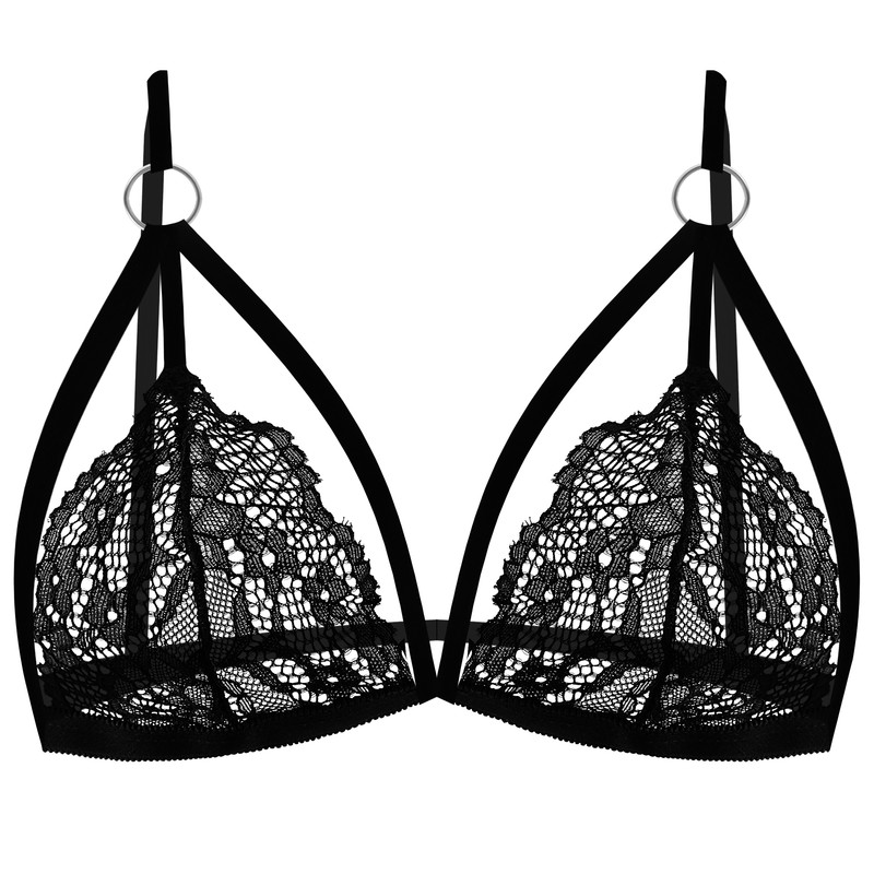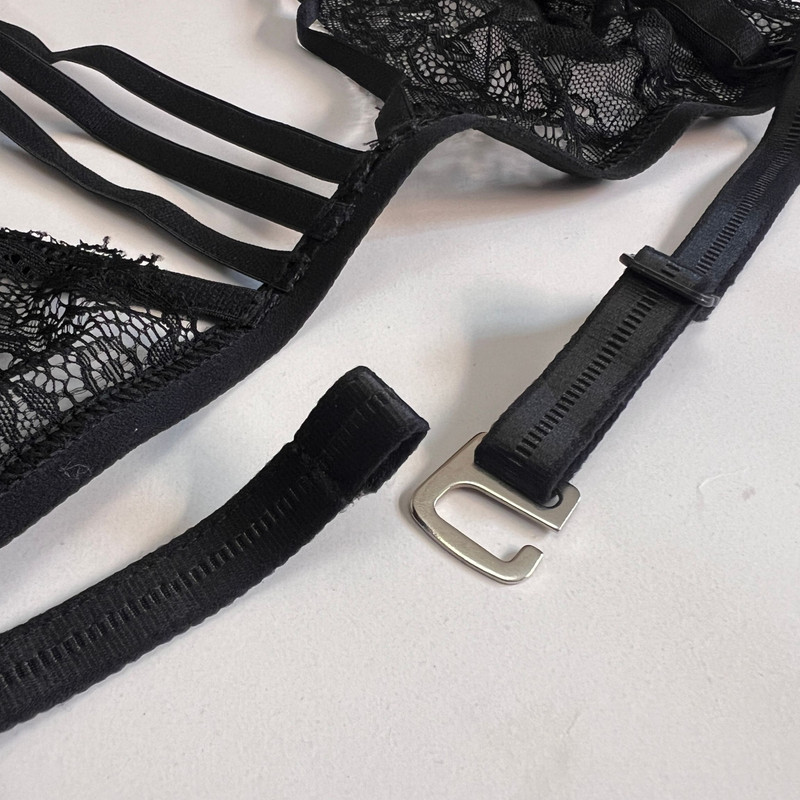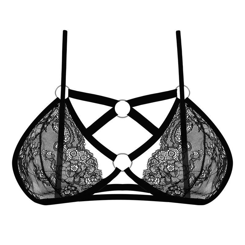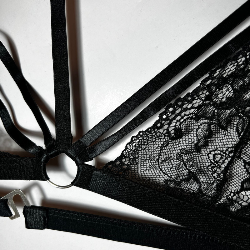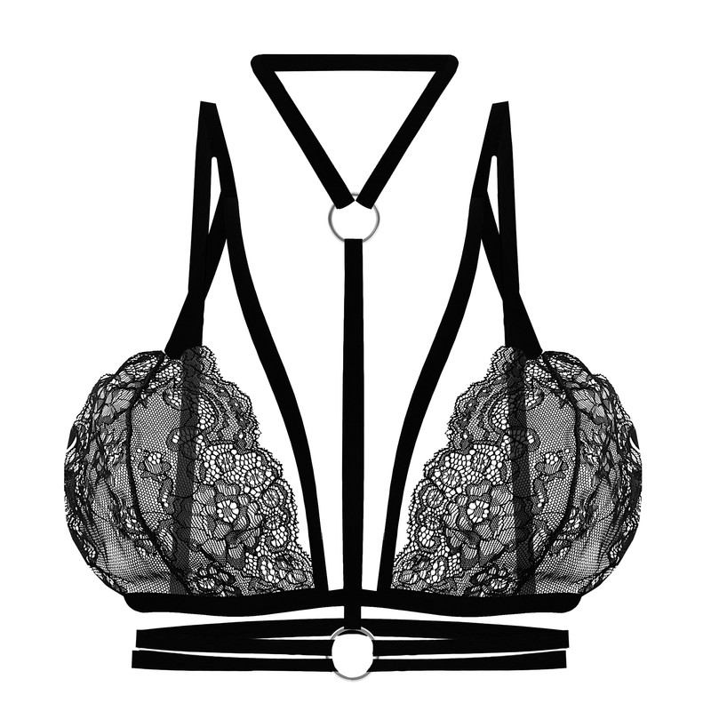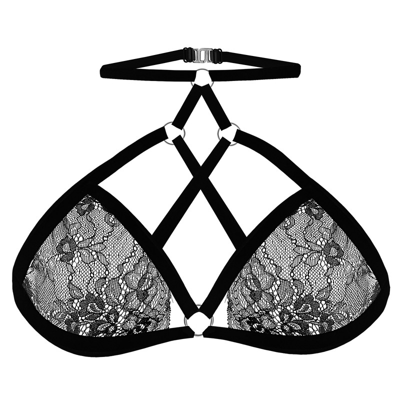 سوتین فانتزی زنانه مدل گیپور هارنس دار مشکی کد 305