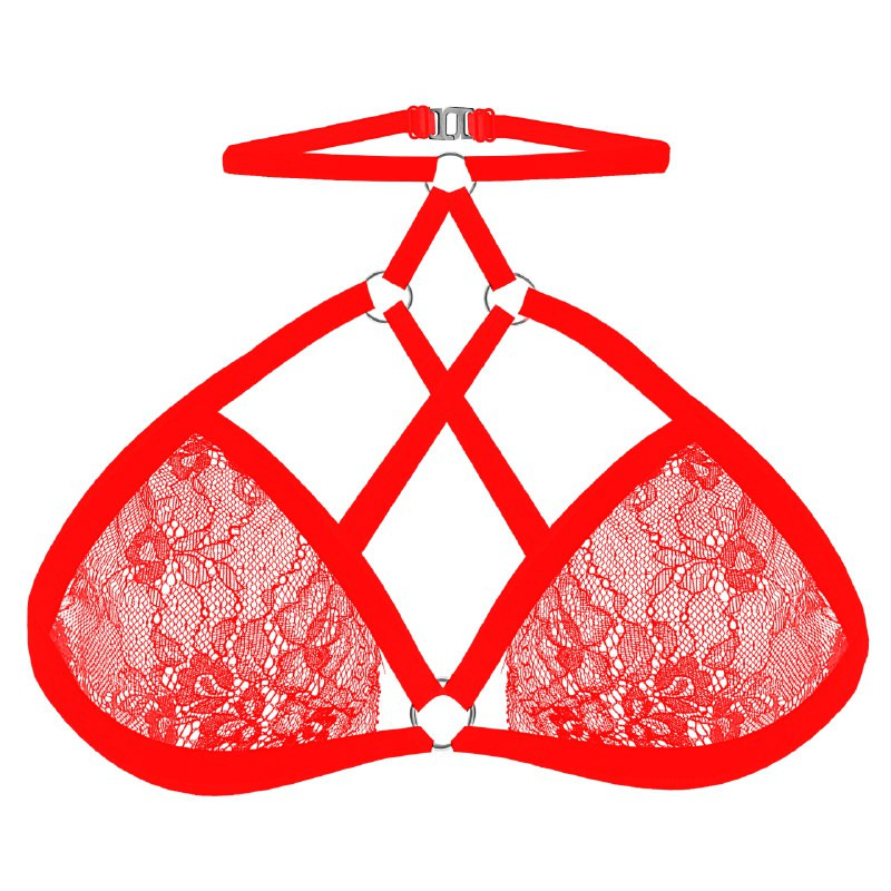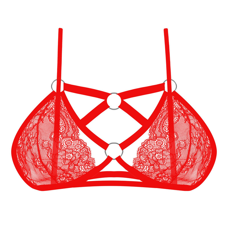 سوتین فانتزی زنانه مدل گیپور هارنس دار قرمز کد 305