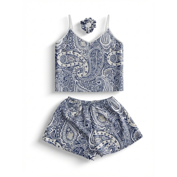 لباس خواب زنانه ساتن طرح بته جقه با کش مو