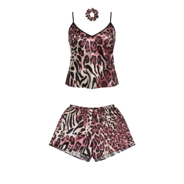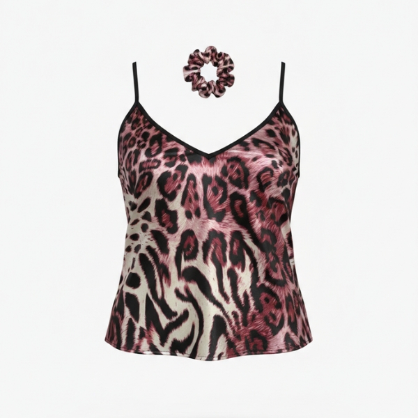 لباس خواب زنانه ساتن طرح پلنگی با کش مو