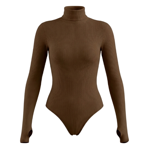 بادی یقه اسکی آستین انگشتی قهوه ای