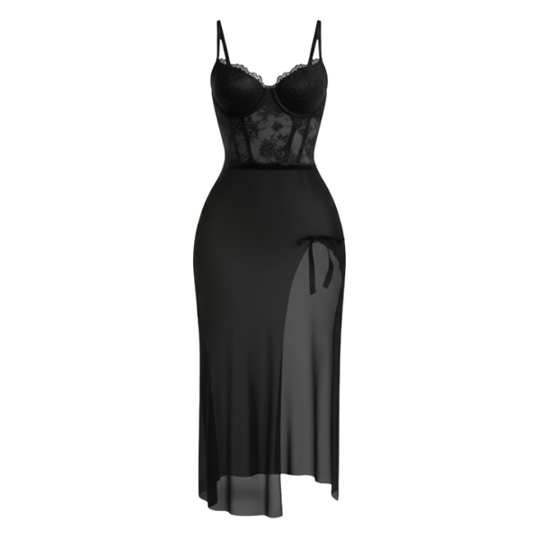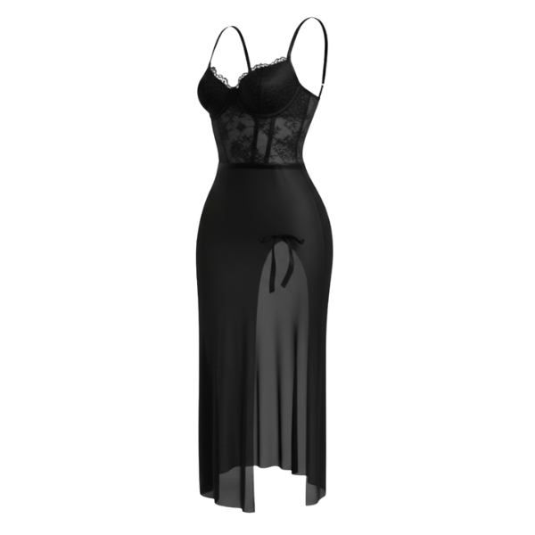 لباس خواب بلند فنردار گیپور و تور مشکی لاوین 4235