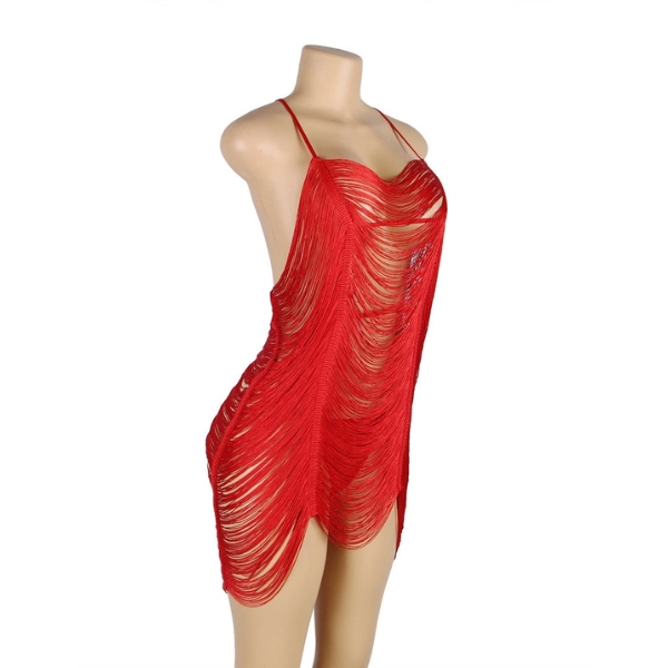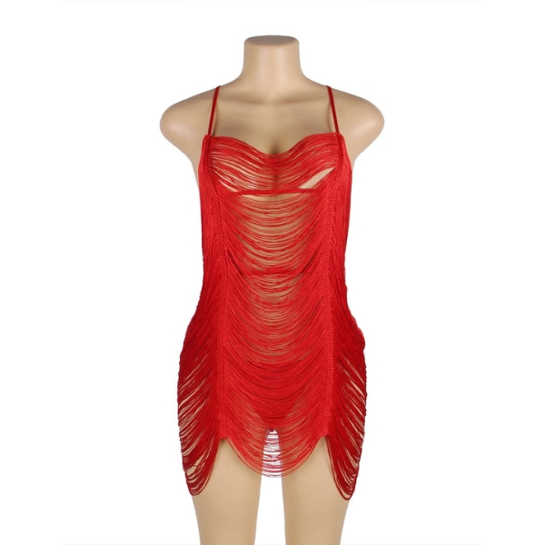 لباس خواب زنانه مدل ریش ریشی قرمز شهره