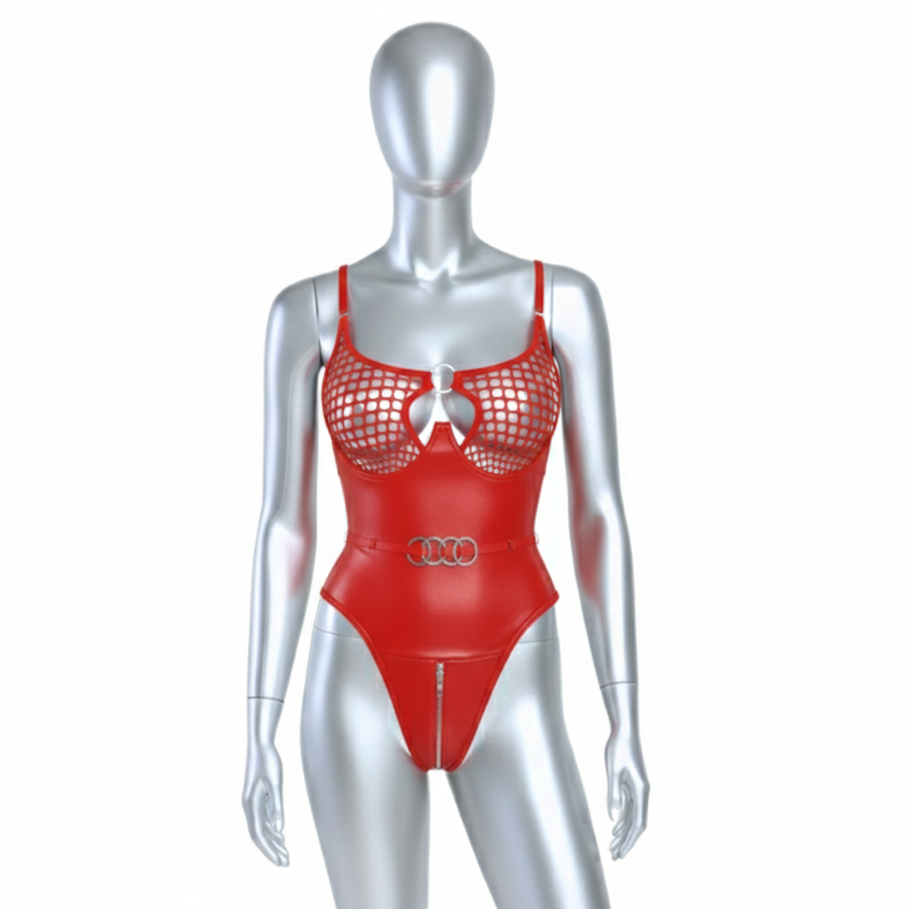 بادی فانتزی لاتکس زیپ دار قرمز پرن 1045