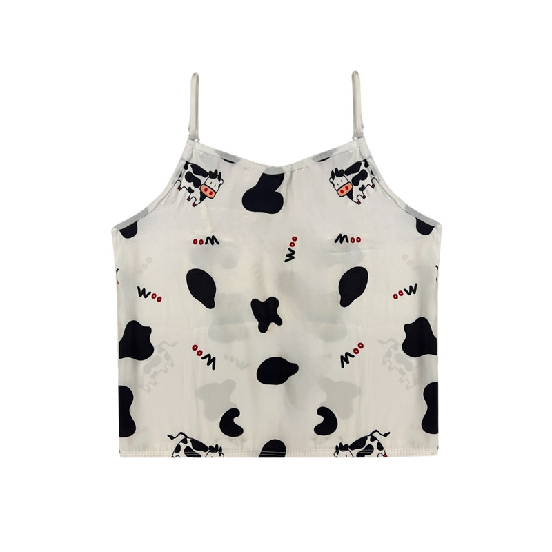 لباس خواب زنانه ساتن طرح گاوی همراه با کش مو