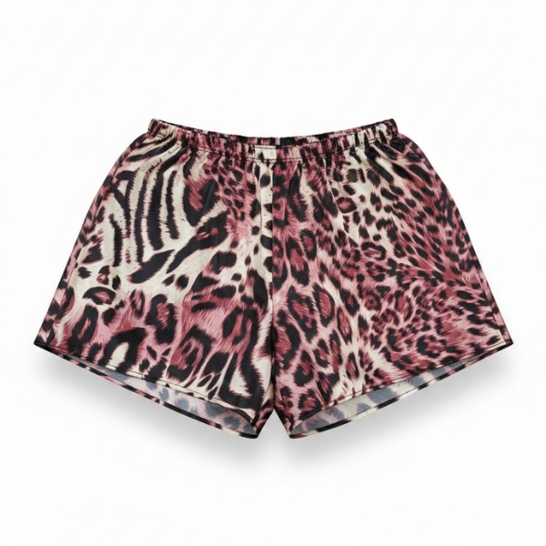لباس خواب زنانه ساتن طرح پلنگی با کش مو