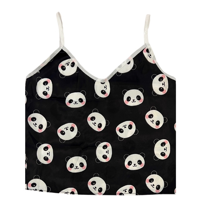 لباس خواب زنانه ساتن طرح پاندا همراه با کش مو