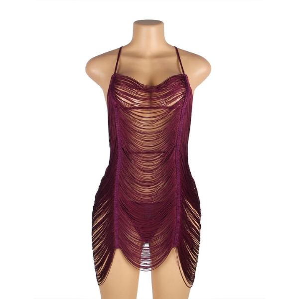 لباس خواب زنانه مدل ریش ریشی بادمجانی شهره