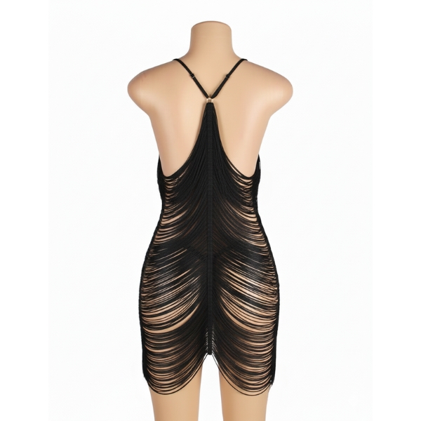 لباس خواب زنانه مدل ریش ریشی مشکی شهره