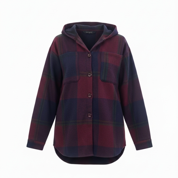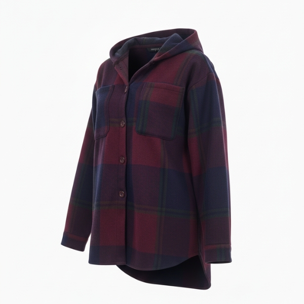 پالتو بدون آستر پشمی کلاهدار زنانه چهارخانه رنگی