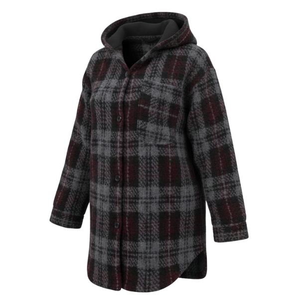 پالتو بدون آستر پشمی کلاهدار زنانه طوسی زرشکی