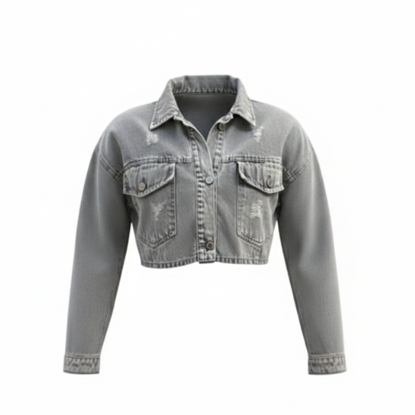 کت جین زنانه زاپ دار طوسی