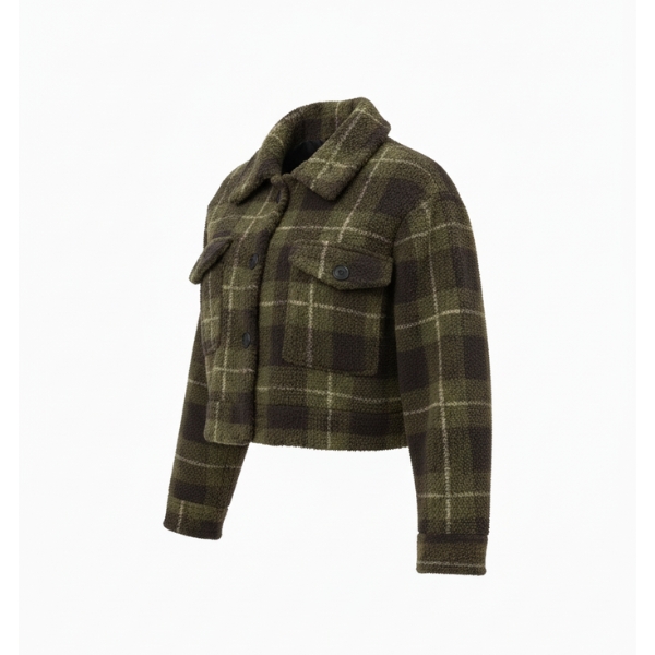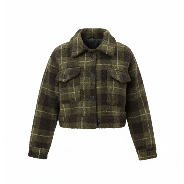 کت زنانه چهارخانه تدی سبز