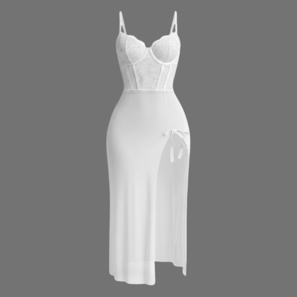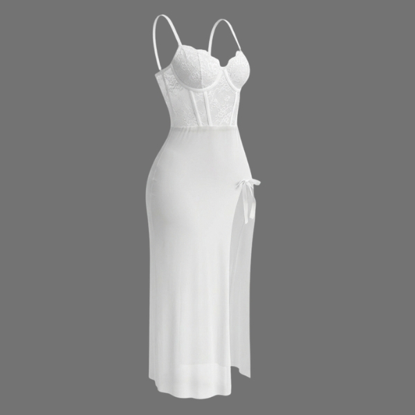 لباس خواب بلند فنردار گیپور و تور سفید لاوین 4235